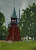Below is a watercolour of the church and bell-tower in Mora by its famous citizen and artist, Anders Zorn. In the space from which Zorn painted the scene about a hundred years ago, there now stands a rather prosaic supermarket and an incongruous Thai eatery, so to paint the scene I needed to do it from a different angle (see above).
